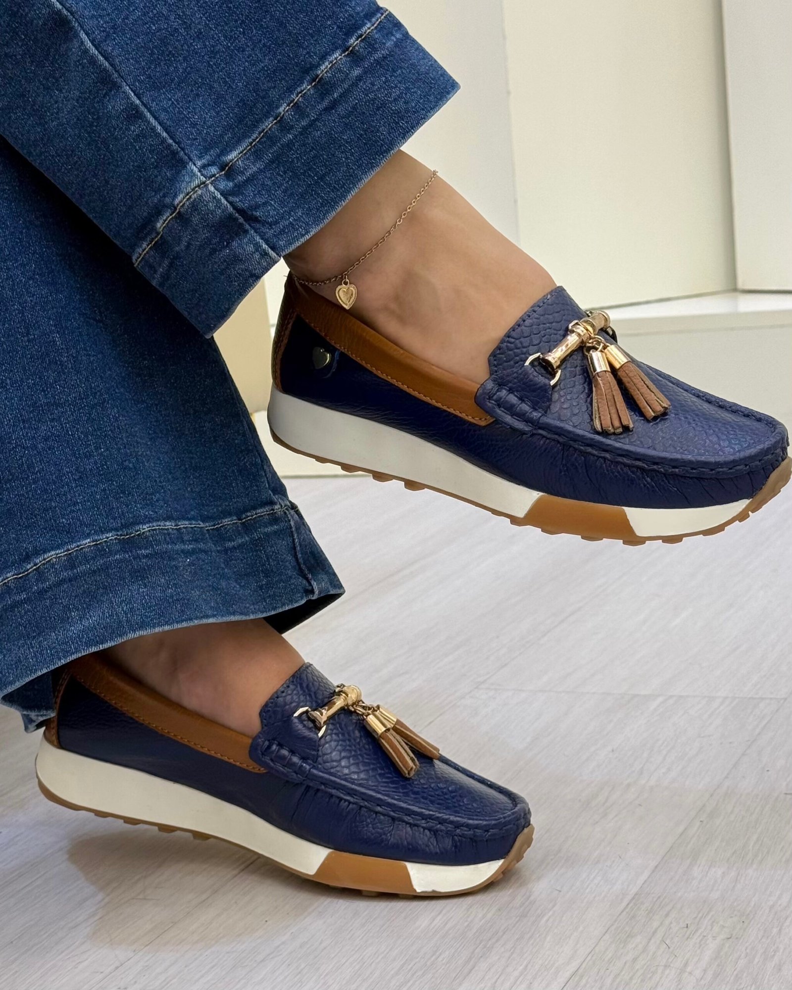 Los mocasines Amalia en cuero azul con detalles en tono camel de Calzados Maryori López están diseñados para mujeres que valoran la elegancia discreta y los colores que nunca pasan de moda. La combinación del azul profundo con acentos camel crea un diseño armonioso, versátil y sofisticado, perfecto para acompañarte en el día a día con estilo.