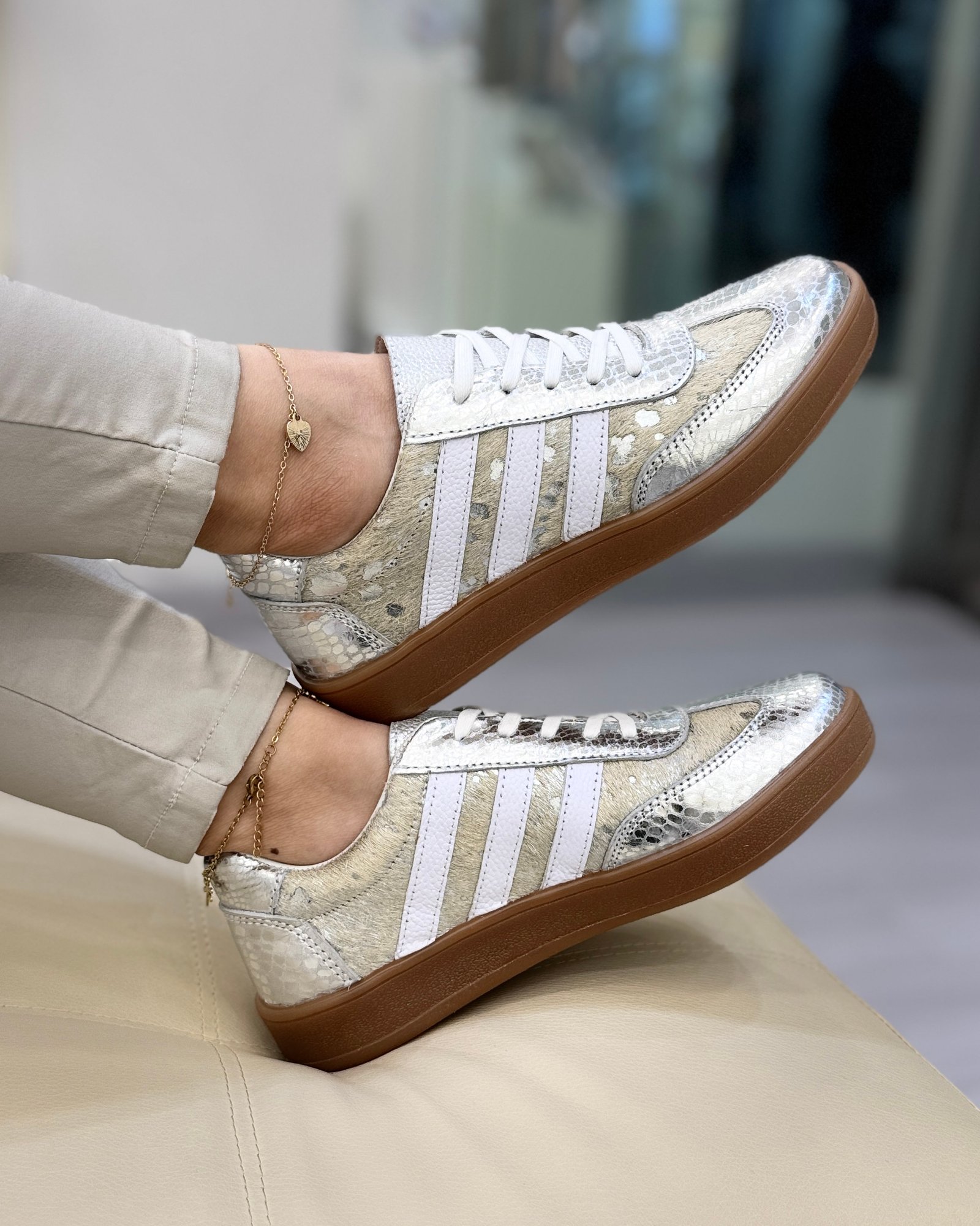 Zapatilla Jennifer Plateado Cuero Mujer | Maryori López