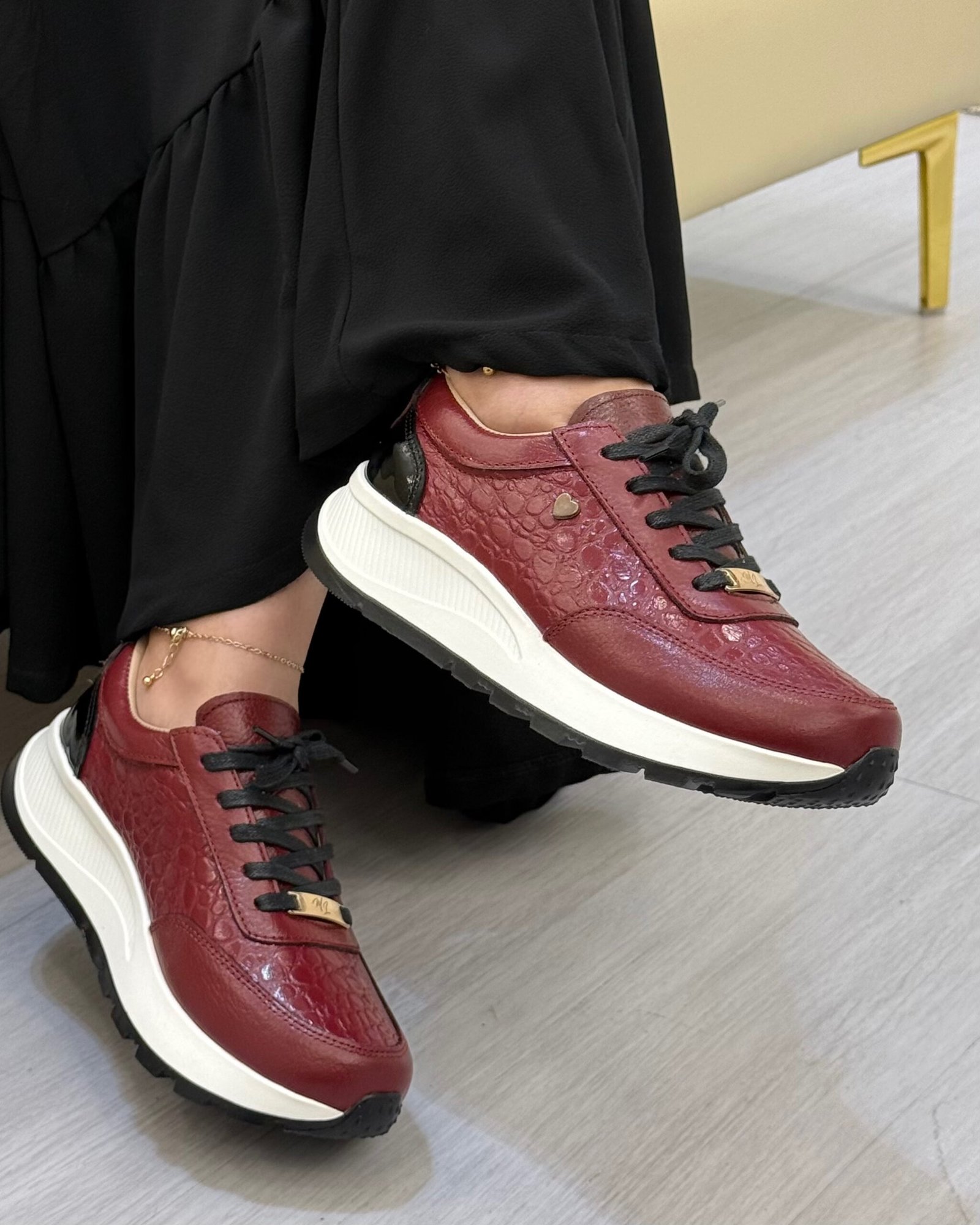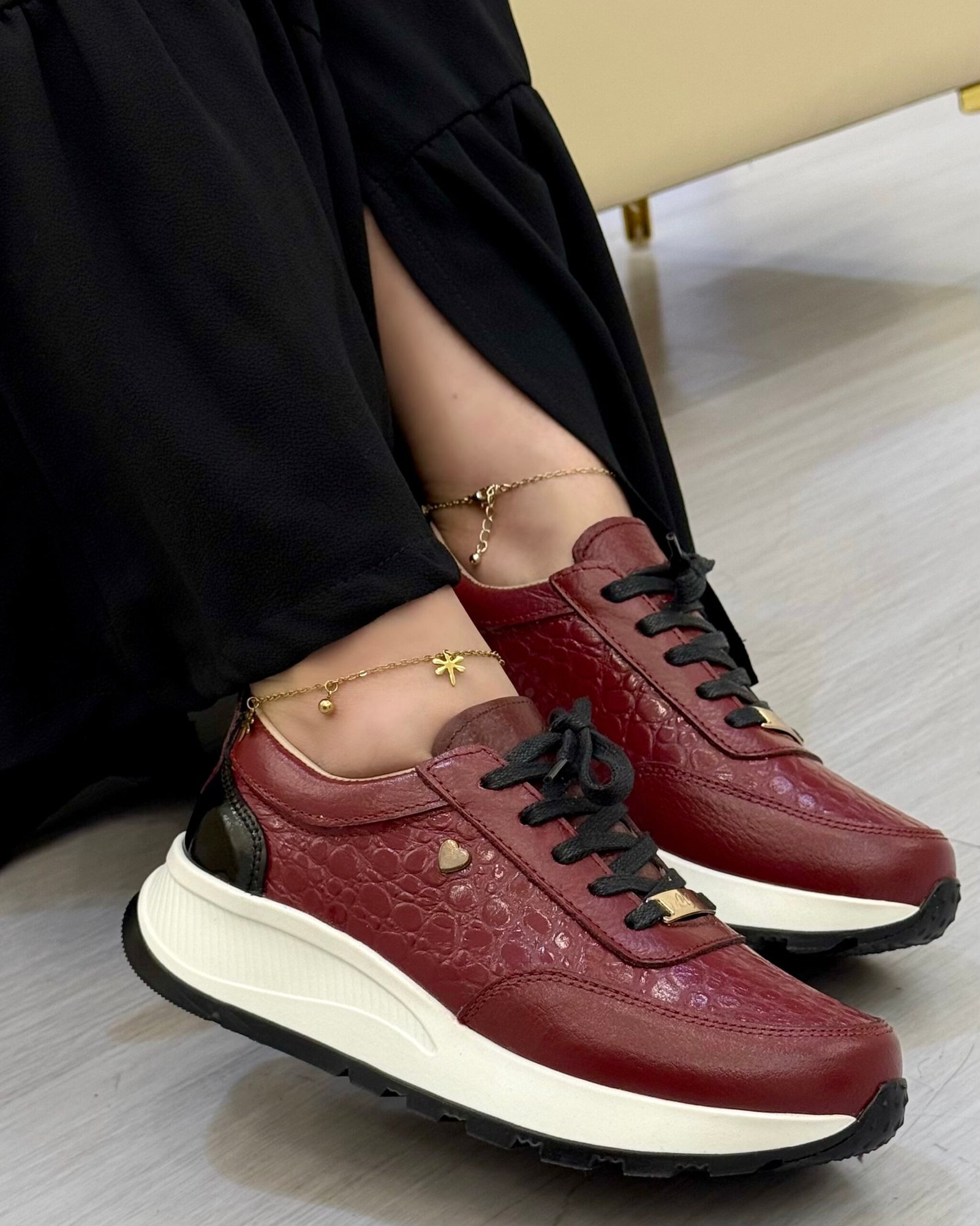 Las zapatillas Marcela en cuero color burdeo de Calzados Maryori López están pensadas para mujeres que buscan un tono sofisticado, intenso y fácil de combinar. El burdeo aporta profundidad y carácter, siendo una alternativa elegante al negro, ideal para looks urbanos con un sello más refinado.